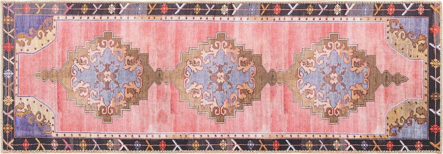 bedbathandbeyond.comPretty in Pink The antique look of this rug adds to its charm. Low pile makes it a great option for high traffic areas. 2’ x 6’ Runner in Pink by Unique Loom, $49,