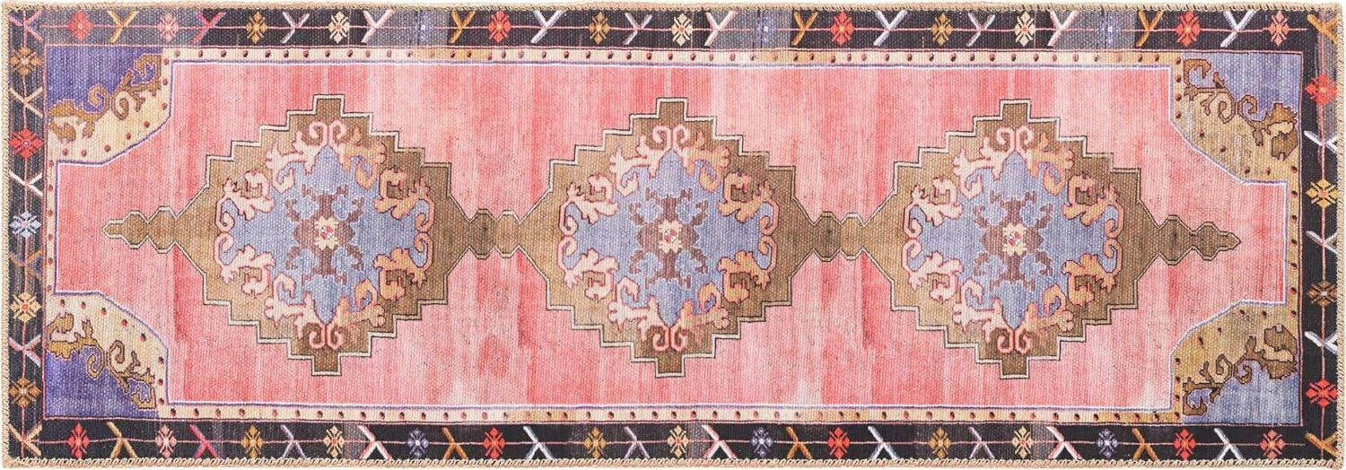Pretty in Pink The antique look of this rug adds to its charm. Low pile makes it a great option for high traffic areas. 2’ x 6’ Runner in Pink by Unique Loom, $49,